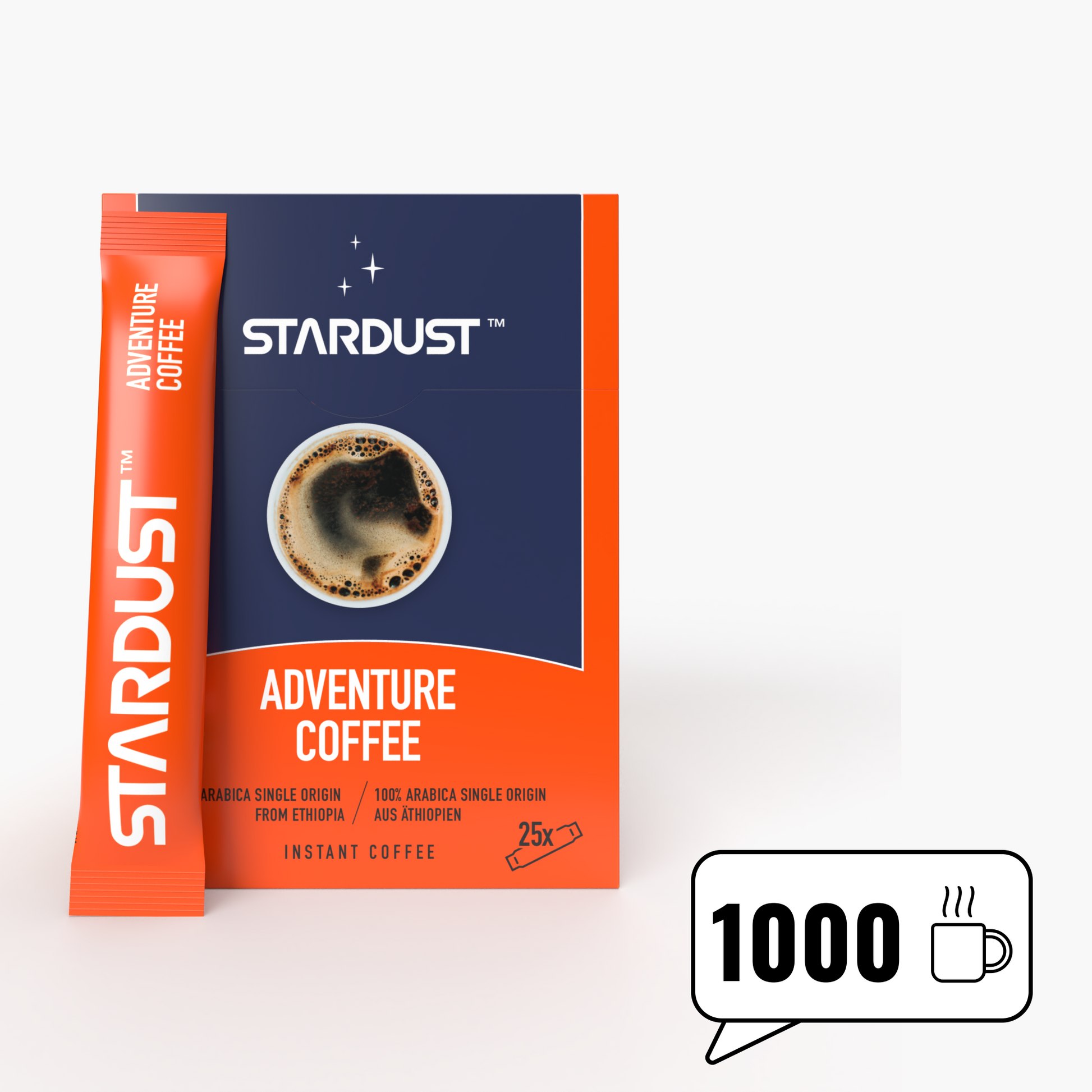 Stardust Kaffee – der Höhepunkt des Kaffeegenusses. Unser Instant-Kaffee, hergestellt aus 100% äthiopischen Arabica-Bohnen, verwöhnt anspruchsvolle Gaumen mit seinem erlesenen Geschmack. Perfekt portioniert für Entdecker:innen und Feinschmecker:innen. Blitzschnell zubereitet, überall und jederzeit genießbar – für den galaktischen Koffein-Kick!
